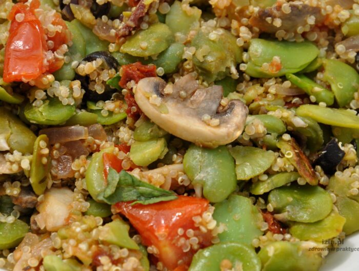 Sezon na bób dostarcza dużo nowych inspiracji. Dzisiaj następna wariacja z bobem w roli głównej. Jako śniadanie, obiad, przekąska, kolacja czy lunchbox. Dodatek stanowi komosa ryżowa komosa ryżowa 200g bób ugotowany …